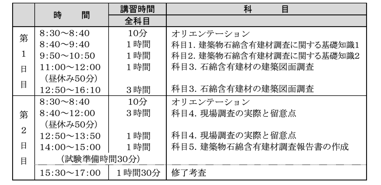 ③受講者資格審査終了後に、受講票・テキスト(中央労働災害防止協会発行「石綿含有建材調査者テキスト<一般建築物・一戸建て等用>」を送付いたします。(事前学習にご活用ください。)